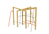 Kletterelement aus Holzrahmen, mit Seilen und Stahlstangen