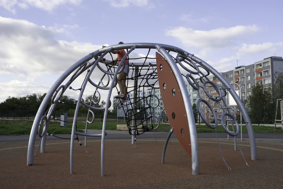 Multifunktionelles Kletterelement mit Seilleiter und Stahlelementen "Halbkugel"