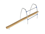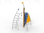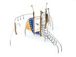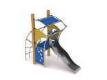 Die Tragkonstruktion besteht aus Akazienholzstreben 100 x 150 mm, das Spielelement aus feuerverzinkten Stahlrohren, Kunststoffplatten HDPE, Herkulesseilen, galvanisierten Ketten, Edelstahlrutschen,