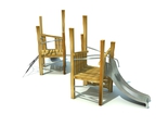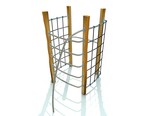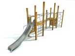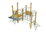 Die Tragkonstruktion besteht aus Akazienholzstreben 100 x 150 mm, das Spielelement aus feuerverzinkten Stahlrohren, Kunststoffplatten HDPE, Herkulesseilen, galvanisierten Ketten, Edelstahlrutschen, Edelstahl-Verbindungsmaterialien und Abdeckkappen. Verankerung der Konstruktionsteile im Betonfundament.