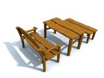 Tisch und BänkeTisch, Sitzbank ohne Rückenlehne, Sitzbank mit Rückenlehne und Armlehnen