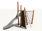 schräge Rutschstange, Kletterwand, vertikales Netz mit Wabenmuster, Leiter, Rutsche