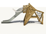 Rutsche, 4x Kletternetze, 4x Griff-Kletterwand, schräge Leiter, versteckter Podest, 2x Balancier-Element "Kopf", 3x Seilleiter, 2x Seile zum Halten, 2x vertikales Seil